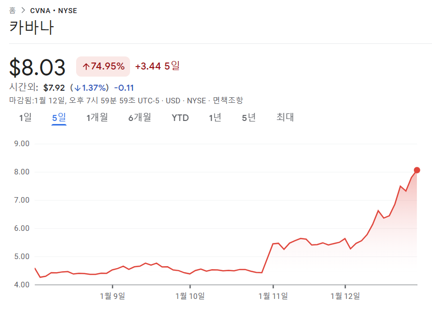 미국기업 카바나(중고차 전자상거래 플랫폼)는 최근에 파산위기였는데...