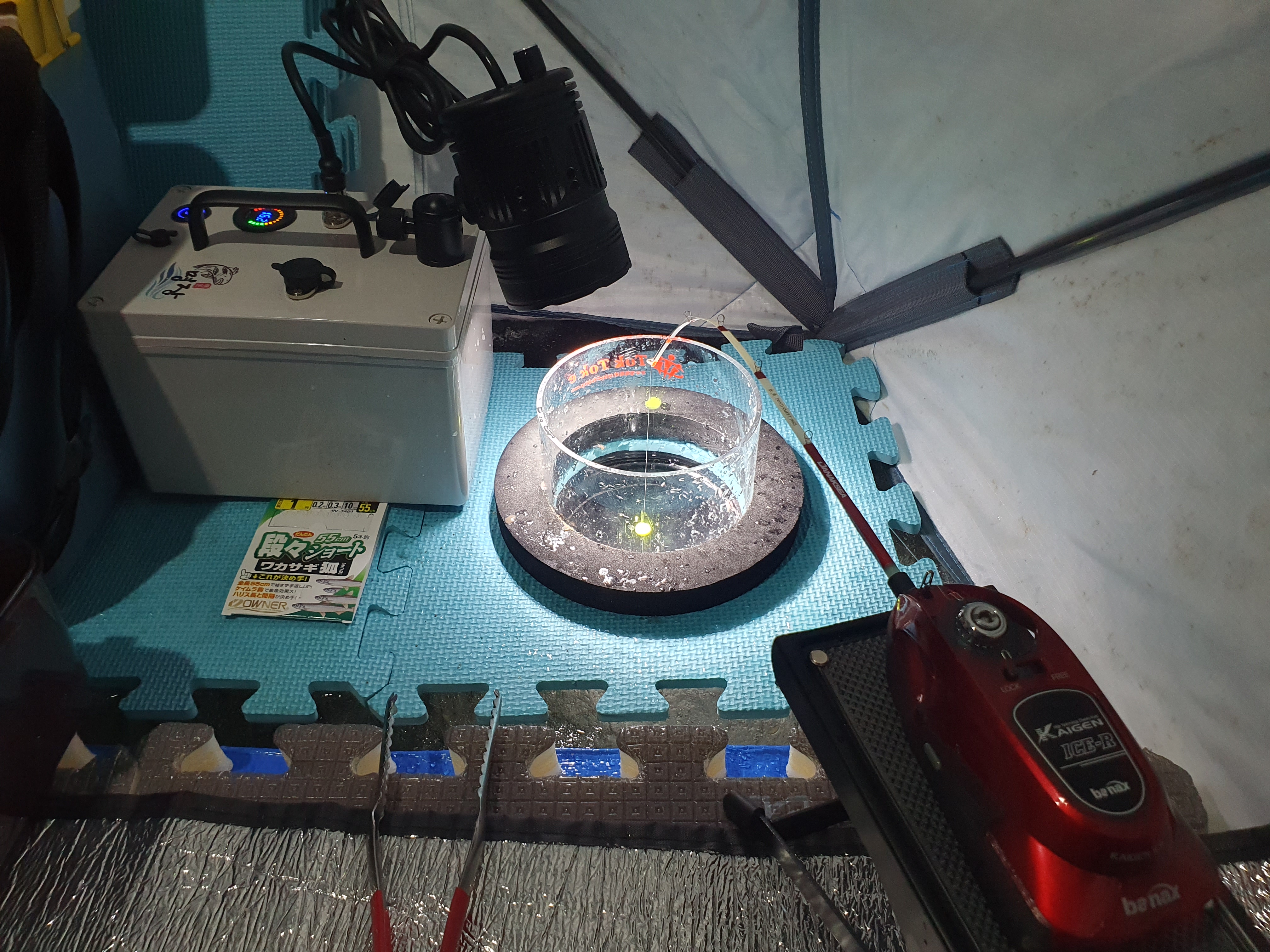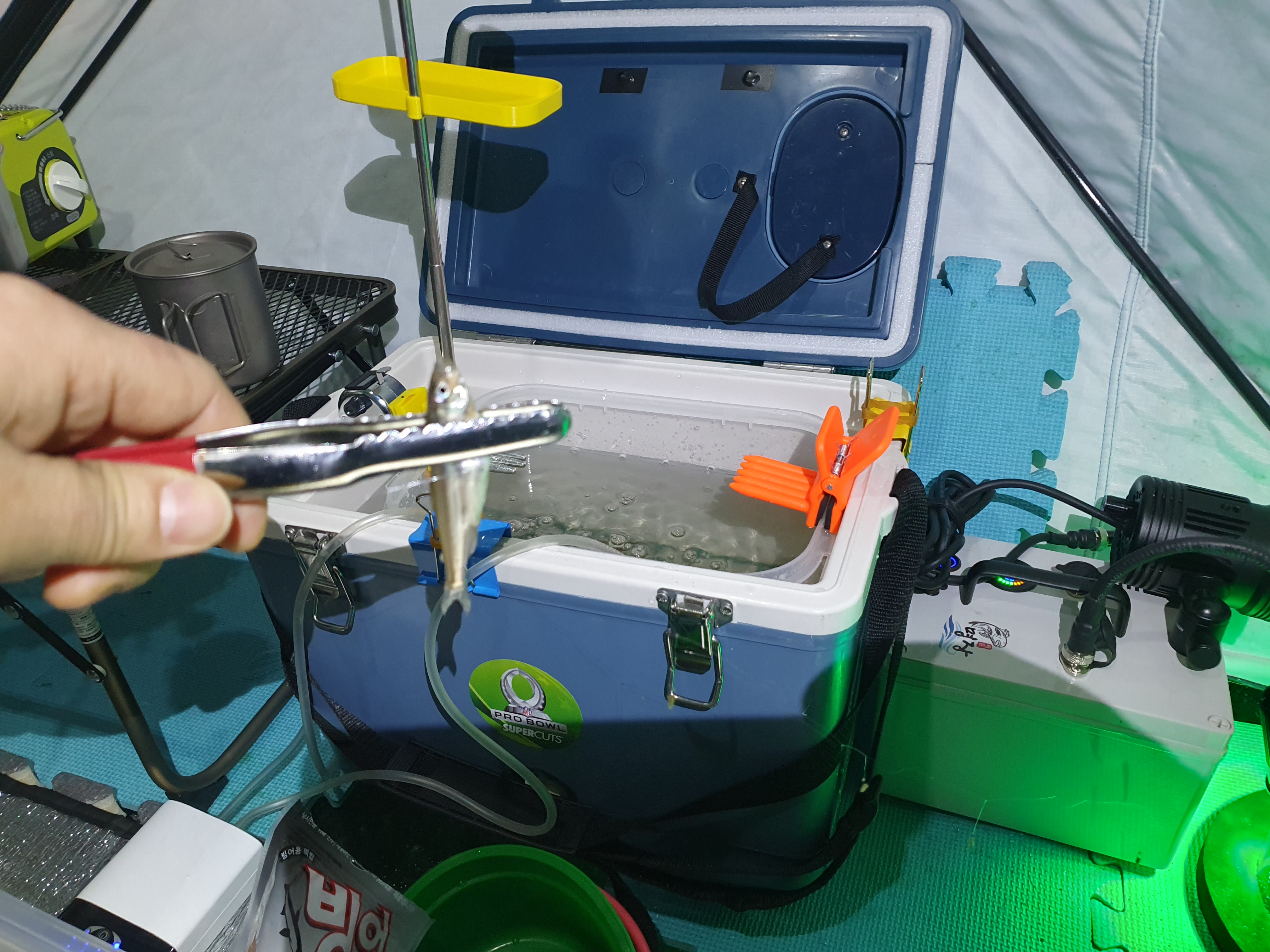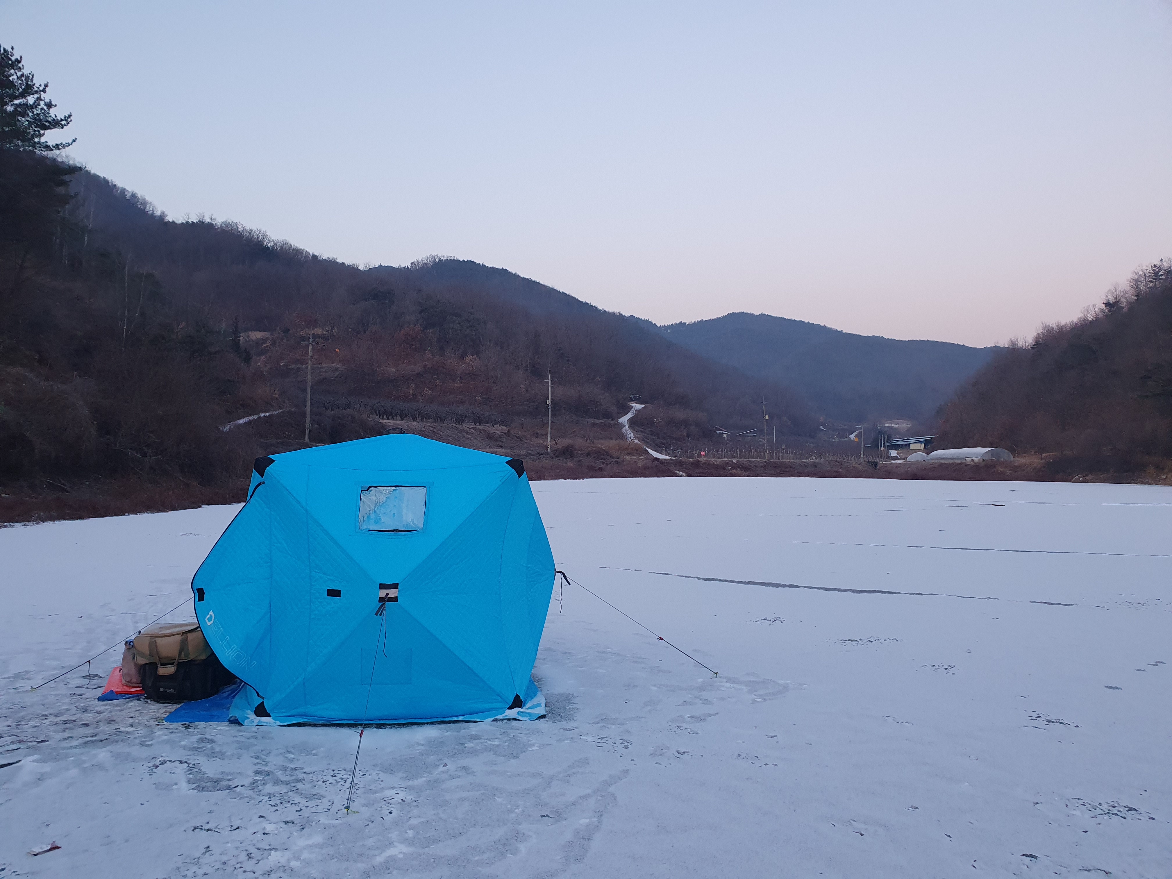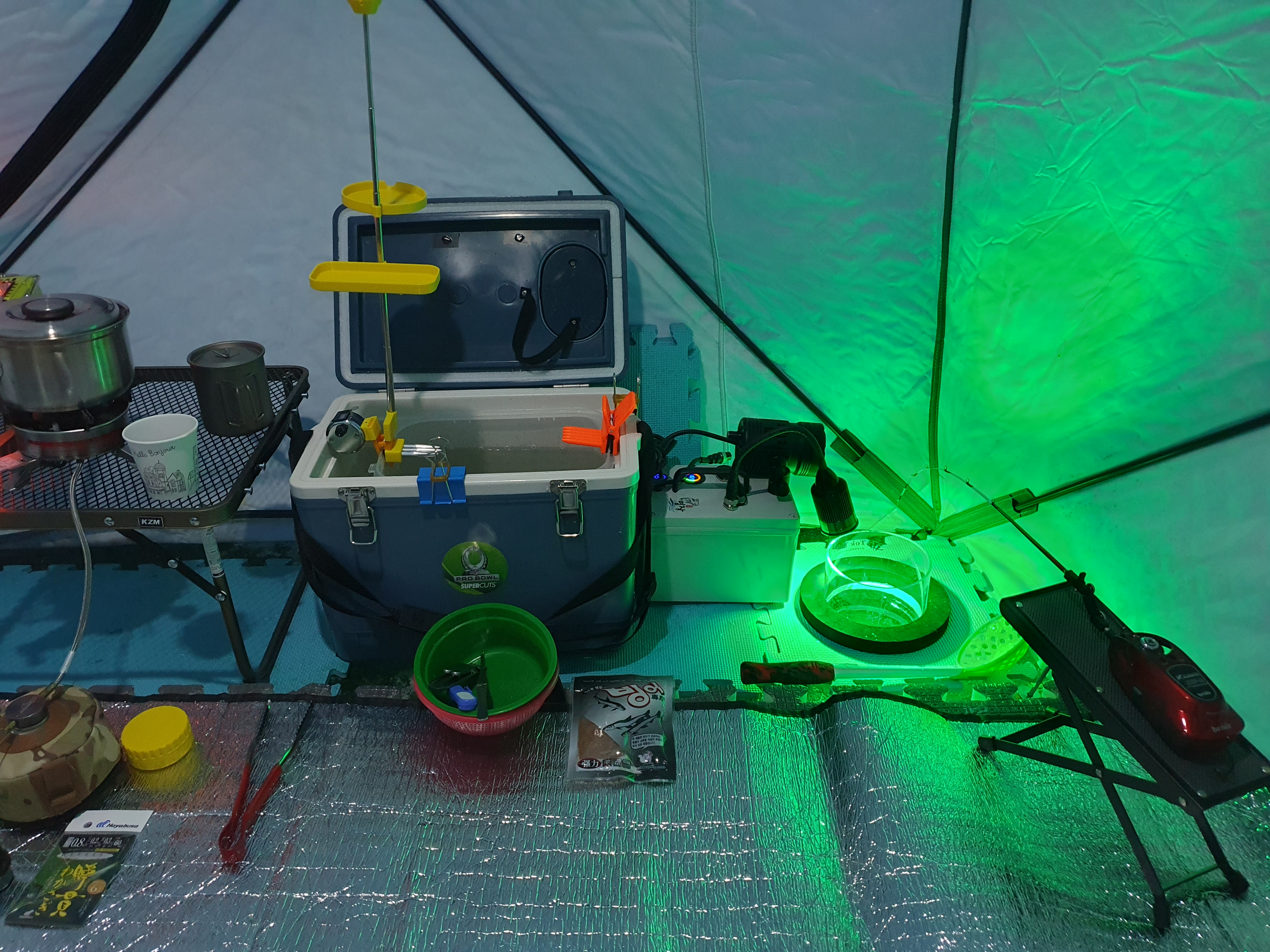 큐브텐트(누빔 180cm) + 바닥재(바닥냉기 차단), 부탄가스 난로 2개(부탄가스 10개), 전동릴(+받침대, 카본0.6 or 0.8호), 집어등, 아이스박스 빙어통(지퍼백), 빙어바늘빼기, 기포기, 빙어덕이 미끼 + 집어제 + 하야부사(오너 0.8호) 일제 바늘, 빙어집게 등