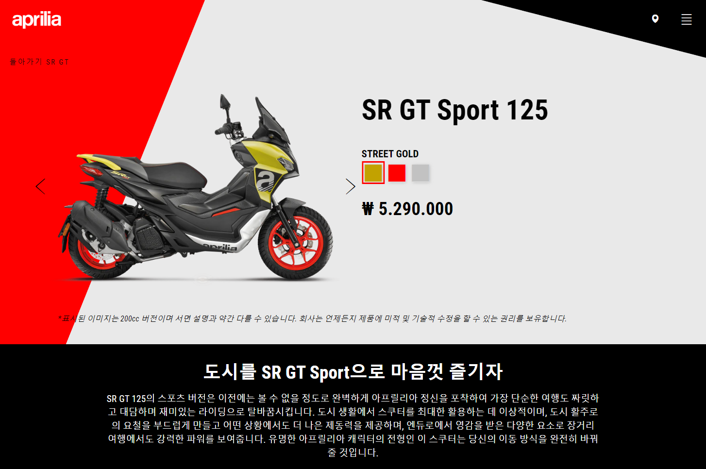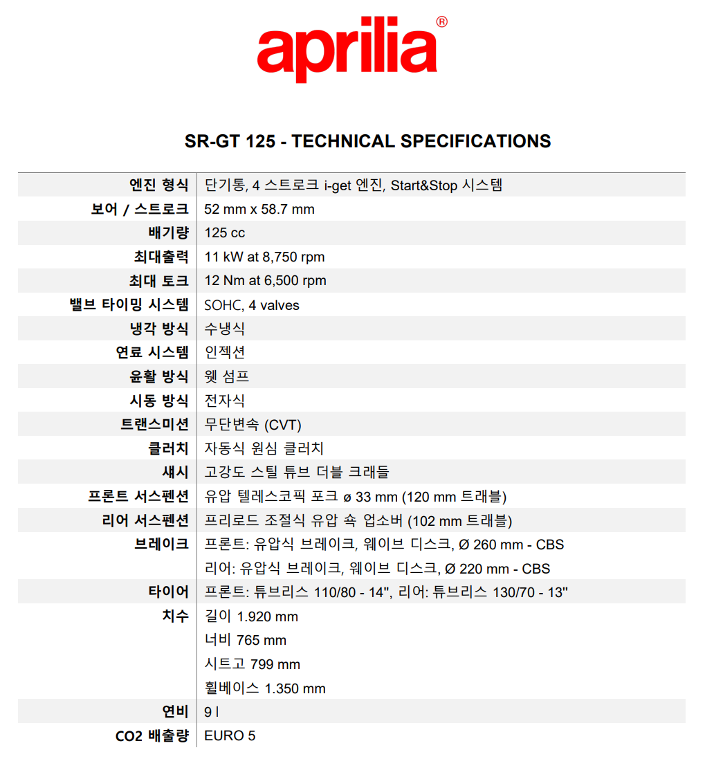 아프릴리아 SR GT Sport 125 스쿠터(이탈리아)