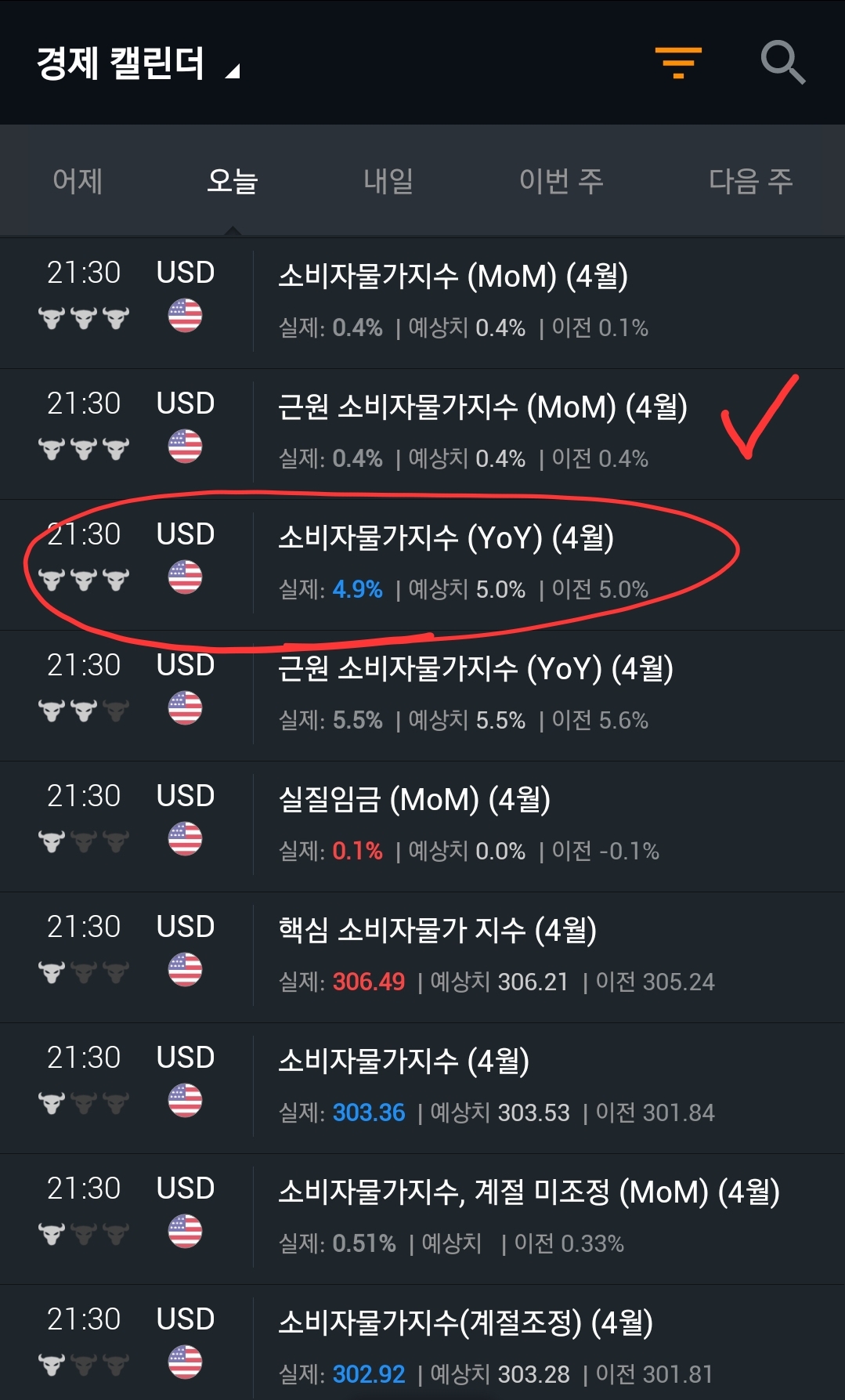CPI 5.0에서 4.9로 소비자물가지수 하락