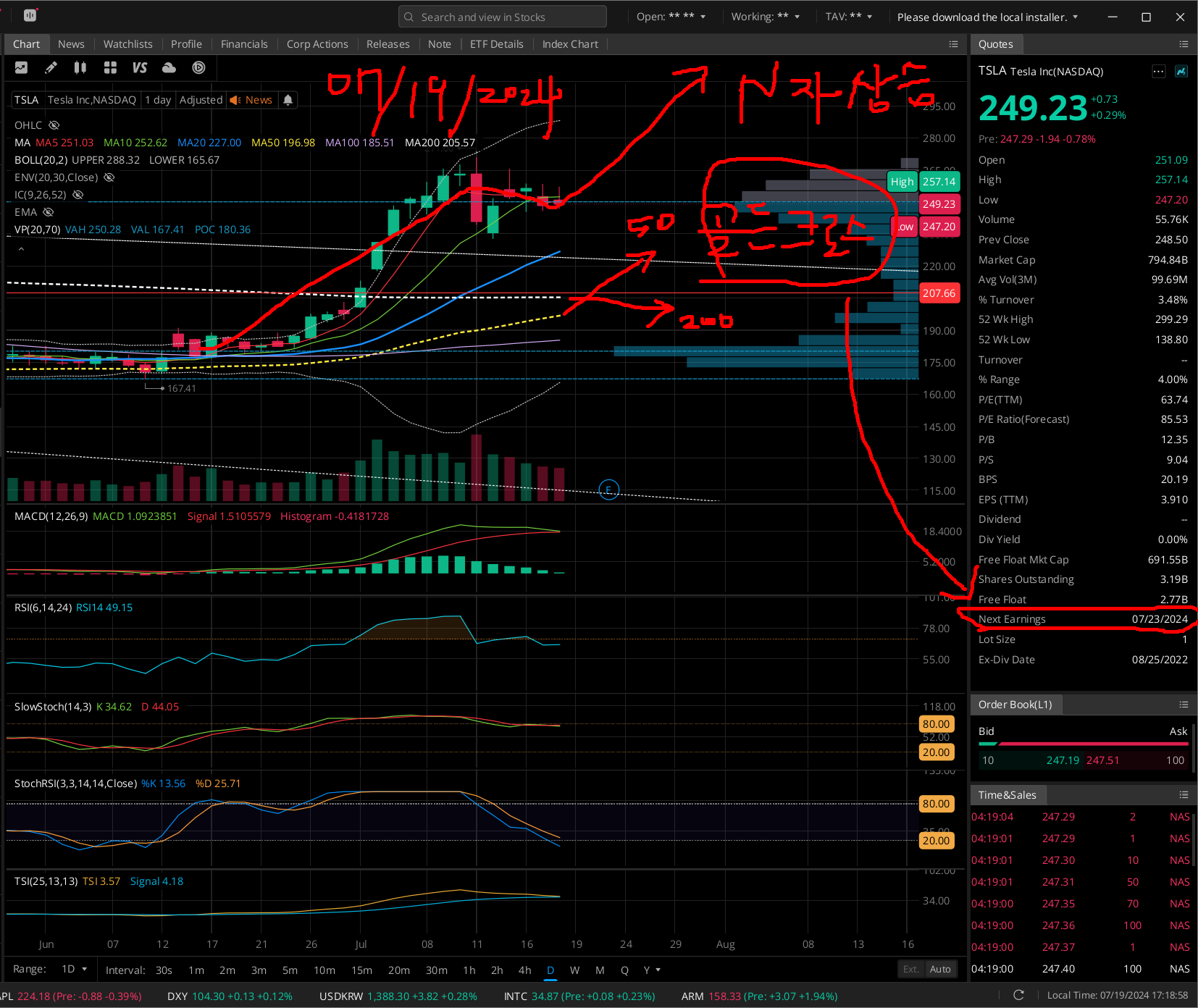 테슬라 한국시간으로 7월 24일 2분기 실적발표후부터 N자형 급상승 가능성 거의 확실시된다.